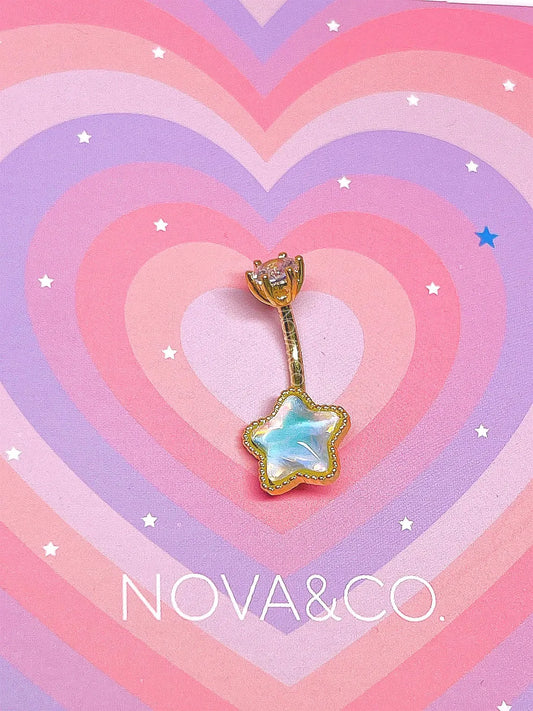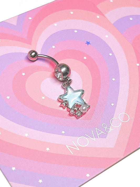 Blue Opalescent Star Charm Belly Ring