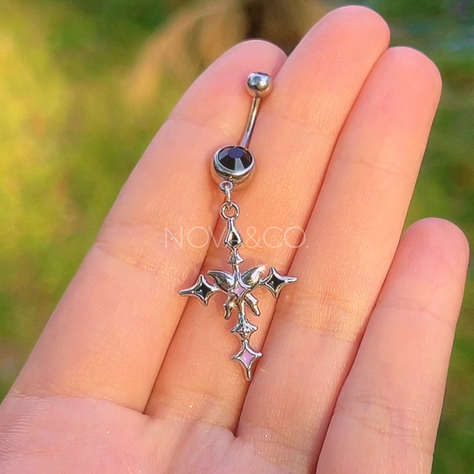 Butterfly Lament Cross Belly Button Ring