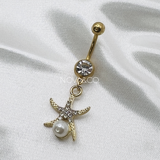 Gold Pearl Starfish Belly Ring