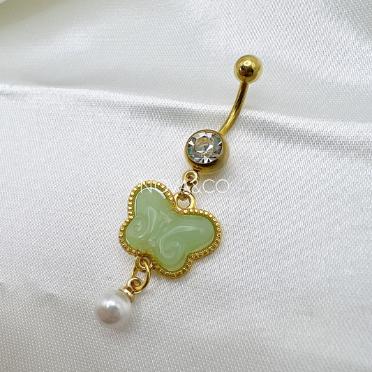 Gold Jade Butterfly Belly Ring