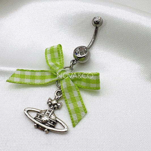 Green Saturn Bow Belly Ring