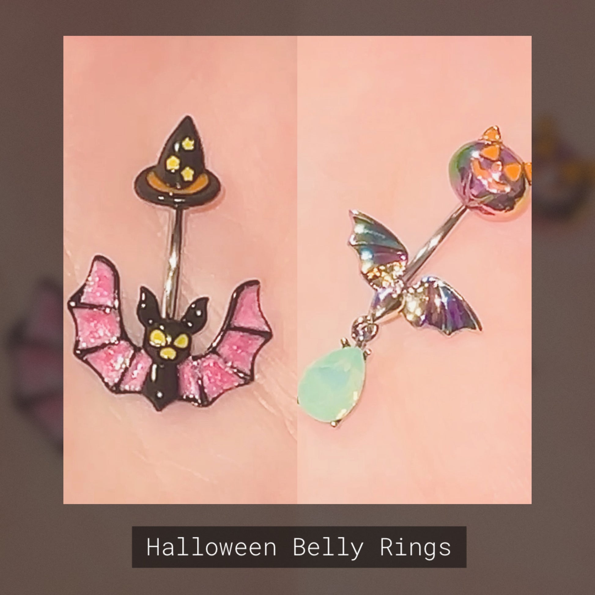 Spooky bat belly rings, perfect for Halloween!